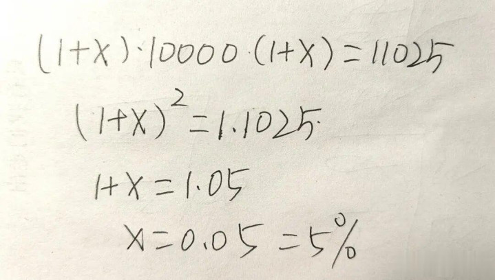 年平均增长率是x,10000块钱,本金不取出2年后是11025,平均增长率是多少?