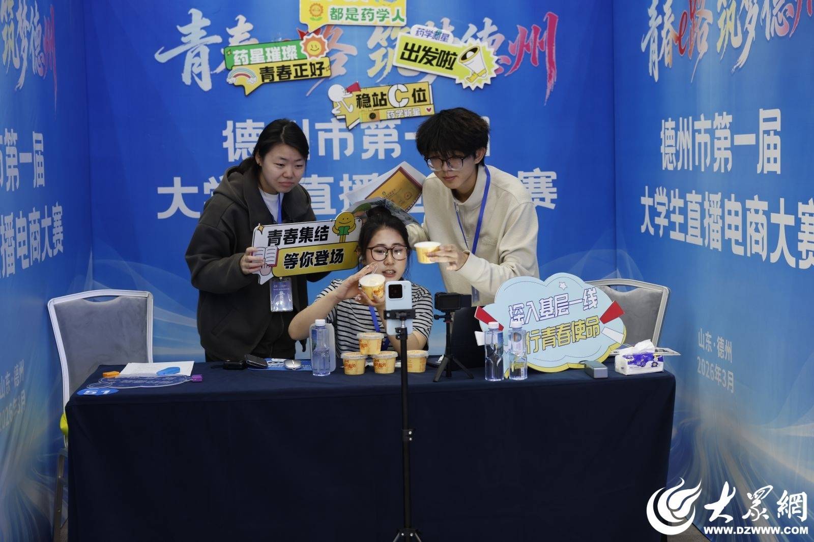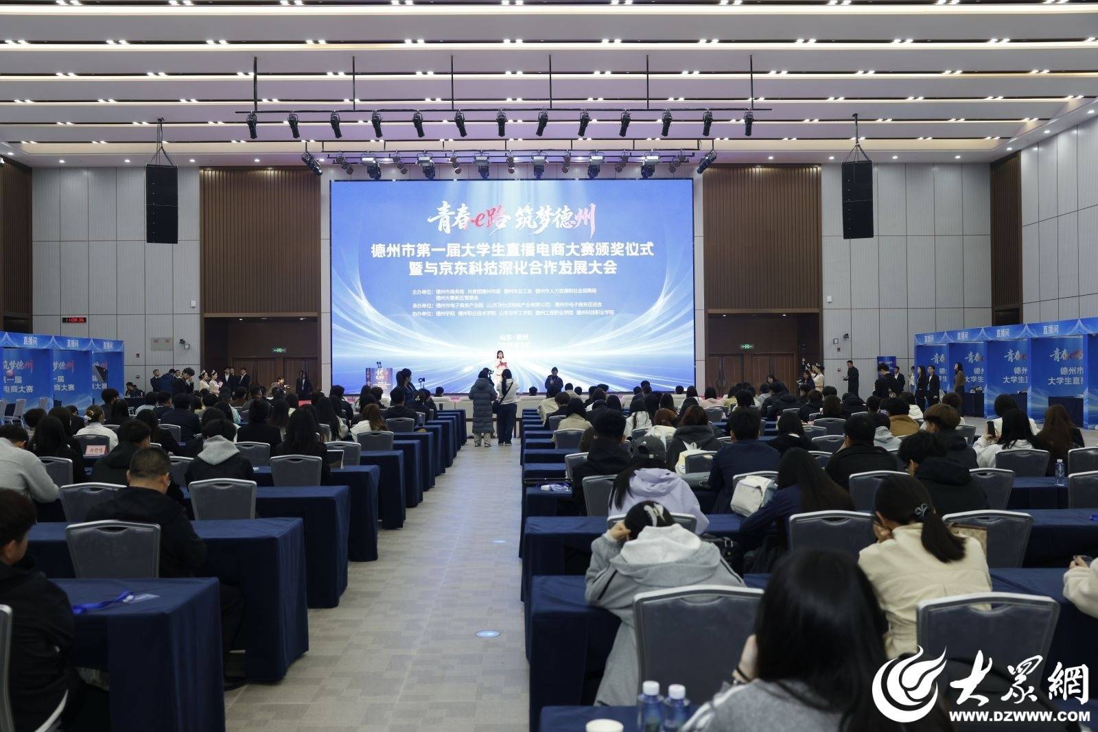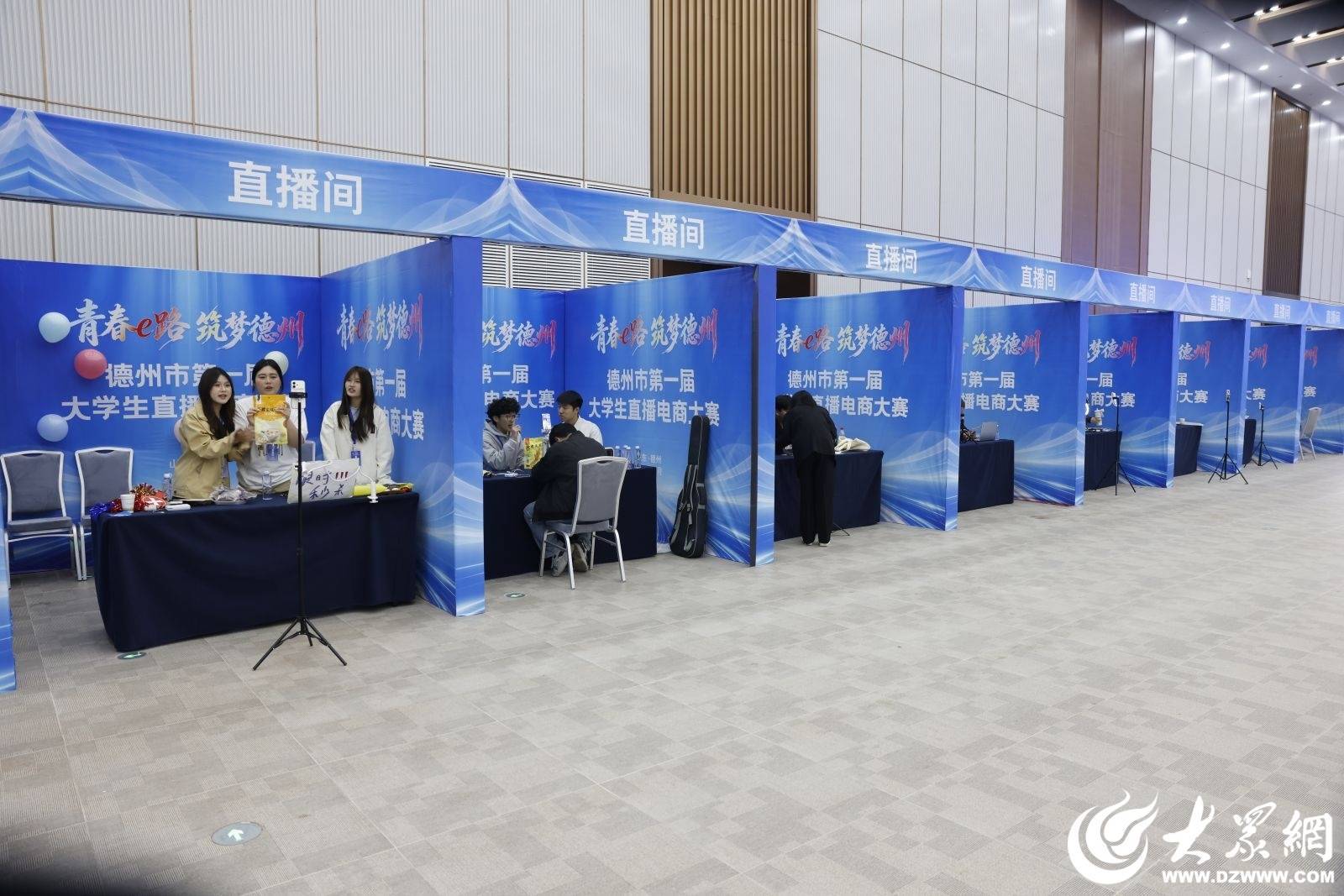 活动由德州市商务局、共青团德州市委、德州市总工会、德州市人力资源和社会保障局、德州天衢新区管委会联合主办,德州市电子商务产业园(山东百仕达地标产业有限公司)承办,并得到京东、抖音、快手、视频号、淘宝、拼多多等平台及多家MCN机构、电子商业产业园和供应链企业的大力支持。来自德州学院、德州职业技术学院、华宇工学院等市内5所高校的100多支大学生队伍报名参赛,经过多轮角逐,52支团队进入决赛。学子们用创意策划和专业的直播技巧,在赛场上展示电商实战能力。