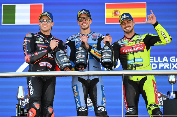 随后的比赛里,亚历克斯·马奎兹展现出了长距离的节奏稳定性,面对身后虎视眈眈的贝塞奇和迪詹南托尼奥,亚历克斯·马奎兹表现得极为冷静,将单圈速度精准控制在1分38秒以内,并最终一领到底,连续两年在赫雷斯赛道夺得冠军。